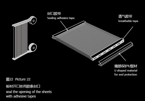 *使用鋁箔膠帶和專用透氣膠帶對板材孔格端部進行封口處理,這兩種膠帶可以從有實力的膠帶生產(chǎn)商處獲得。(見圖22)
