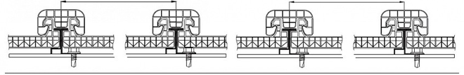 沿著板材,在主檁的剩余部分(見(jiàn)次檁設(shè)計(jì)跨度表),將丁字緊固件對(duì)著板材,用六角頭螺絲固定?。?biāo)準(zhǔn)用2個(gè),強(qiáng)風(fēng)和龍卷風(fēng)地區(qū)用3個(gè))。